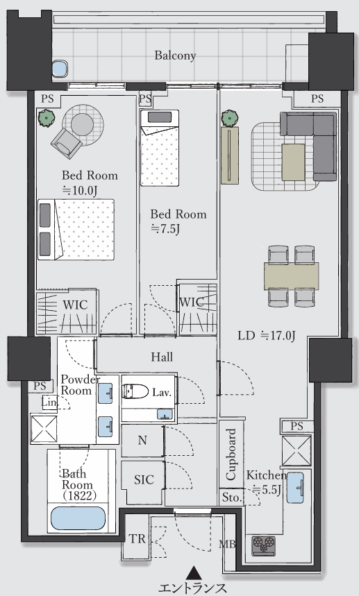 | 間取内容 | LD17帖 K5.5帖 洋室7.5帖 洋室10帖 | ||