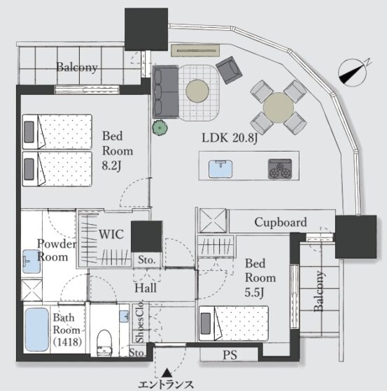 | 間取内容 | LDK20.8帖 洋室8.2帖 洋室5.5帖 | ||