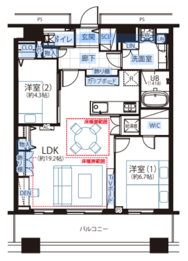 間取内容 LDK19.2 帖 洋室6.7帖 洋室4.3帖