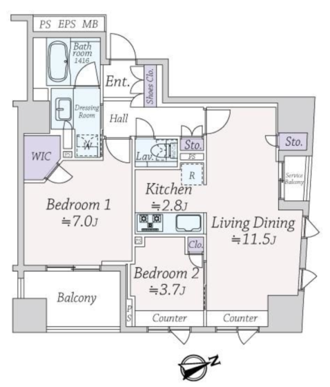 | 間取内容 | LD11.5帖 K2.8帖 洋室7帖 洋室3.7帖 | ||