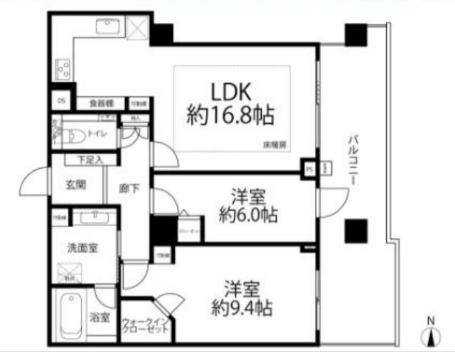 | 間取内容 | LDK16.8帖 洋室9.4帖 洋室6.0帖 | ||