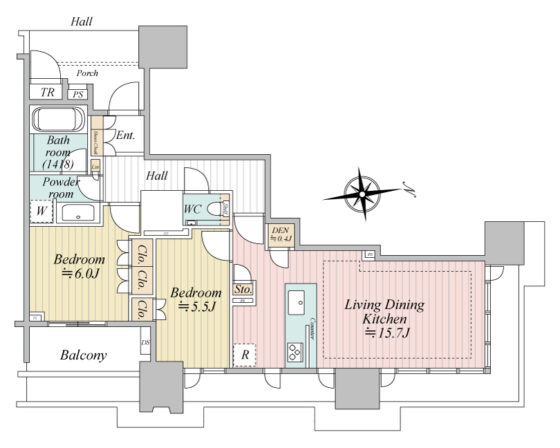 | 面積 | 64.59m²(19.53坪) | 計測方式 | 壁芯 |