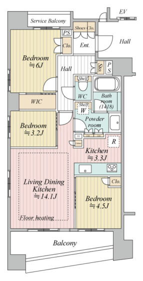| 間取内容 | LDK14.1帖 洋室6帖 洋室4.5帖 洋室4帖 | ||