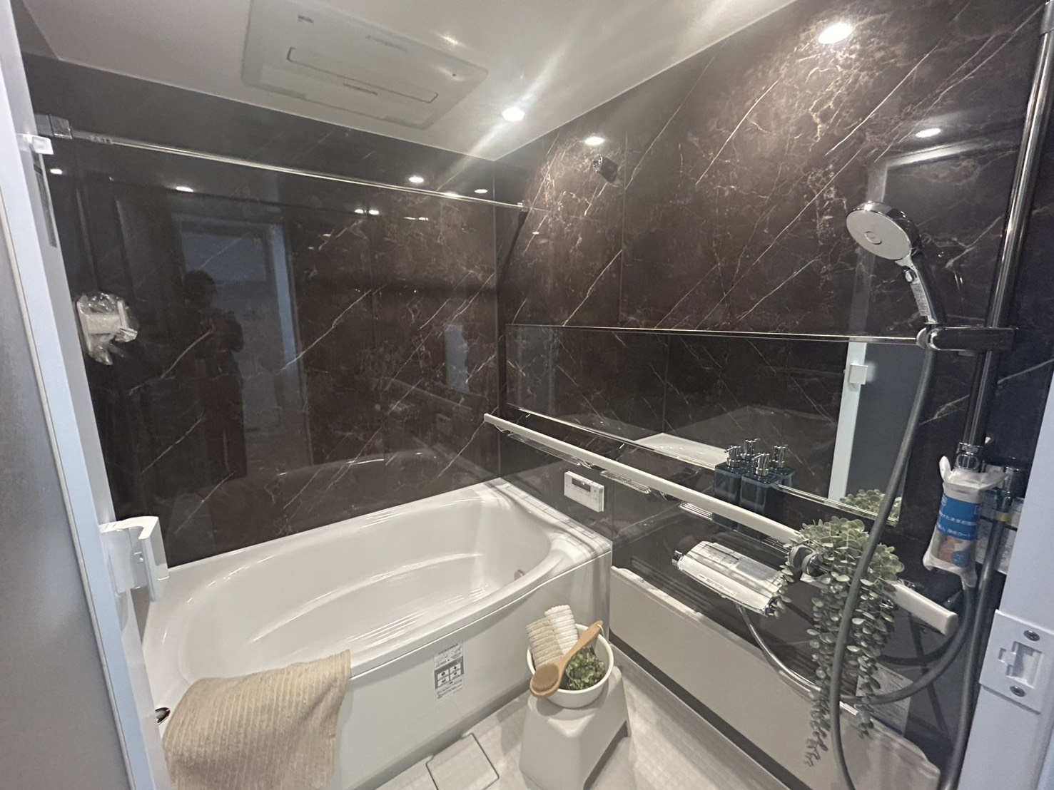 外観 間取り 玄関 建具のカラーアクセントがGood リビング キッチン お風呂鏡下に手すりがついていてお年寄りの入浴も安心安全です。 お部屋からの眺望 お部屋からの眺望 お部屋からの眺望 共用施設 共用施設