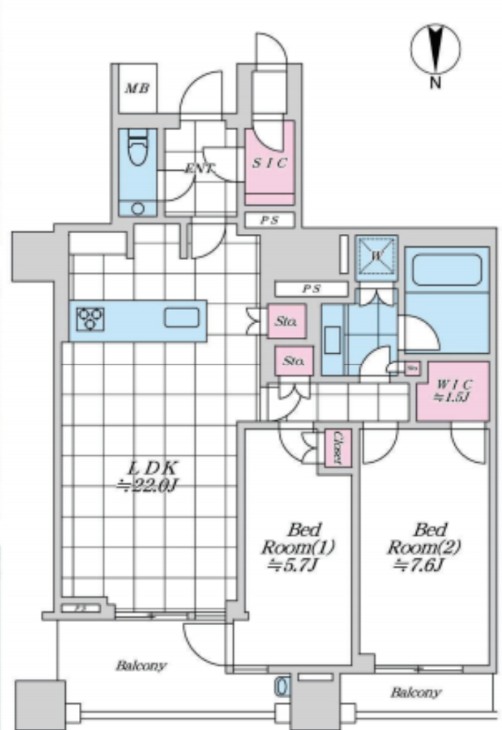 | 間取内容 | LDK22帖 洋室7.6帖 洋室5.7帖 | ||