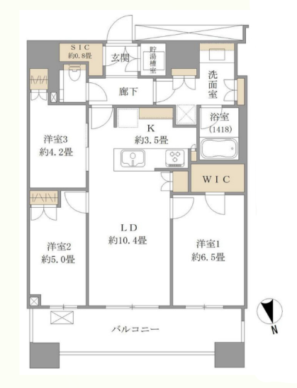 | 間取内容 | LD10.4帖 K3.5帖 洋室6.5帖 洋室5.0帖 洋室4.2帖 | ||