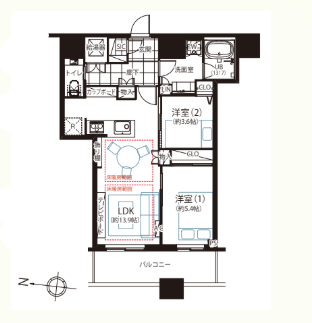 | 間取内容 | LDK13.9帖 洋室5.4帖 洋室3.6帖 | ||