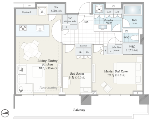 | 間取内容 | LDK18.6帖 洋室10.2帖 洋室6.1帖 WIC+SIC |