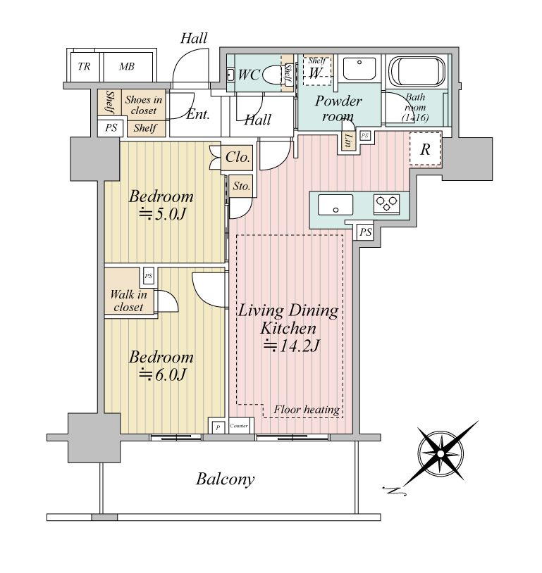 | 面積 | 57.29m²(17.33坪) | 計測方式 | 壁芯 |