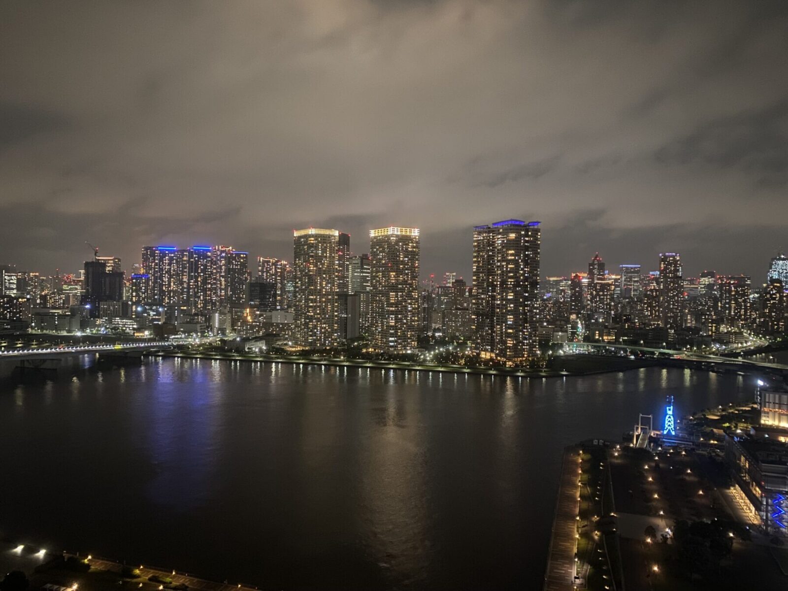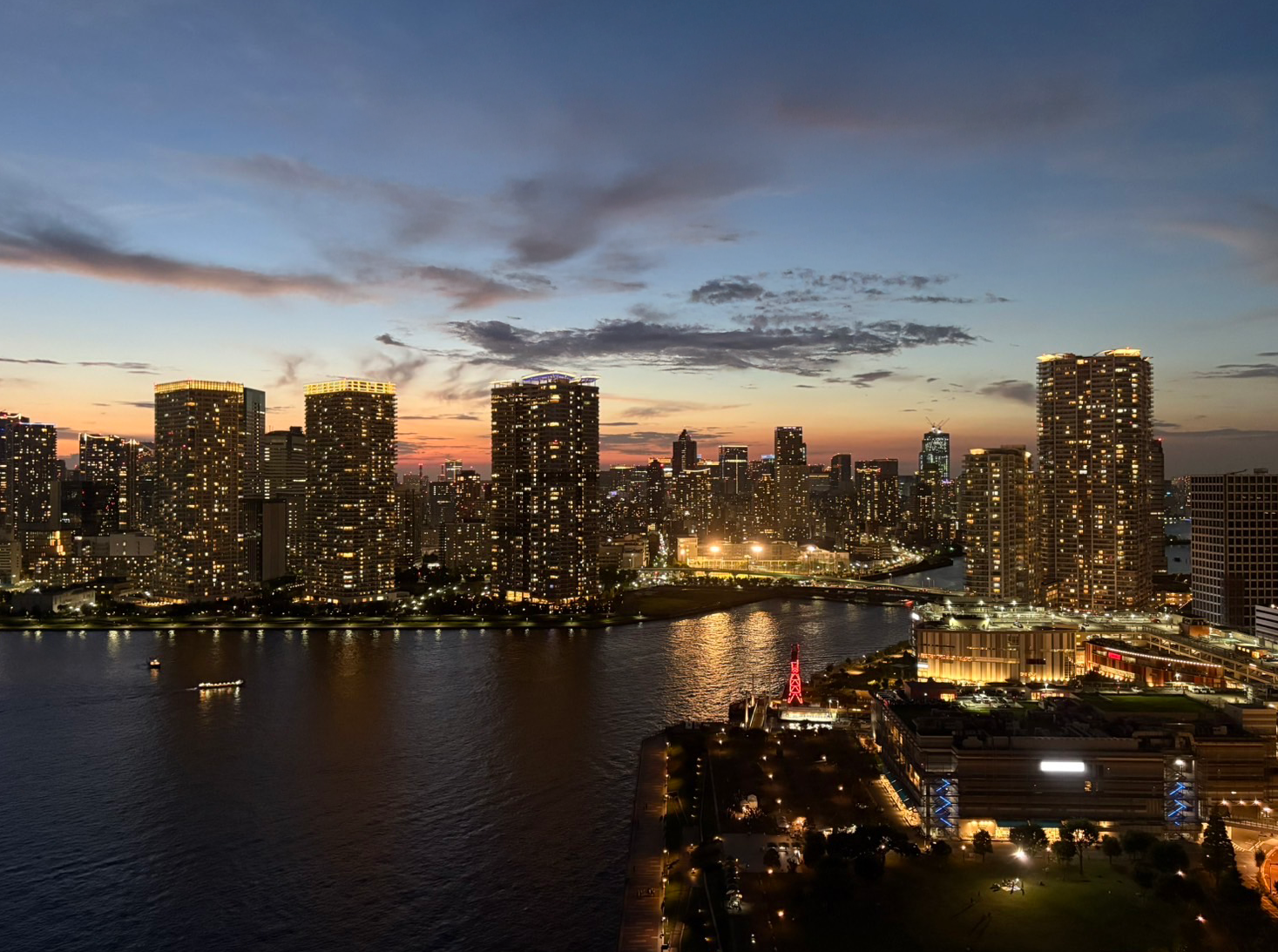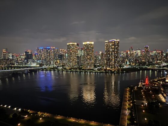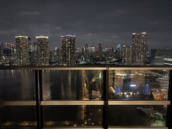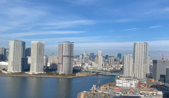 眼下に晴海運河、都心方面を見渡す眺望