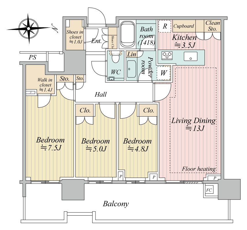 | 間取内容 | LD13.0帖 K3.5帖 洋室7.5帖 洋室5.0帖 洋室4.8帖 WIC+SIC |