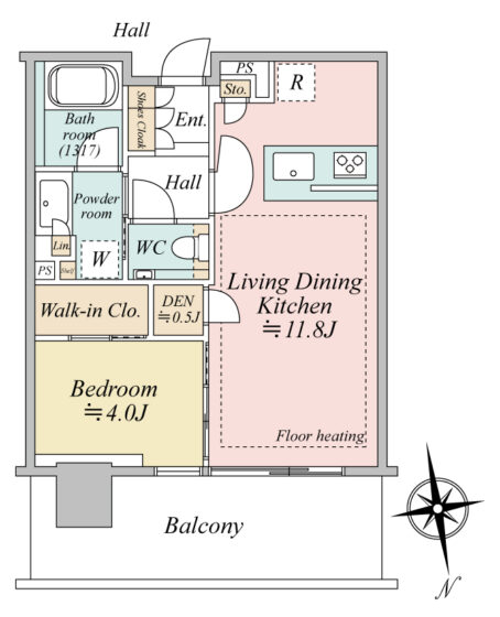 1LDK+WIC+DEN/40.22㎡/北向き