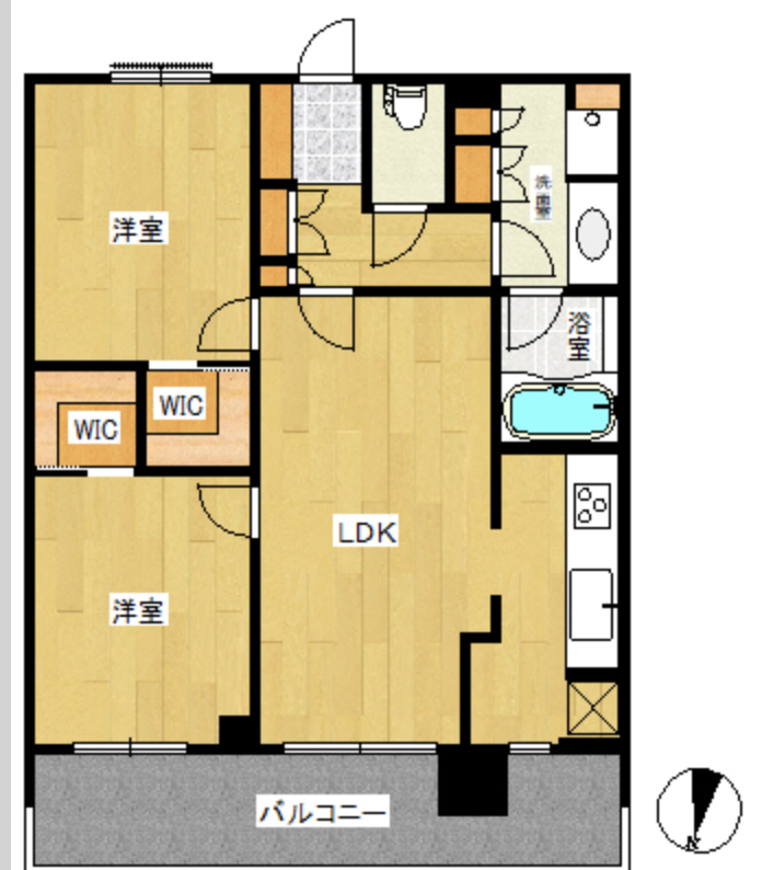 2LDK 60.59㎡ 北向き
