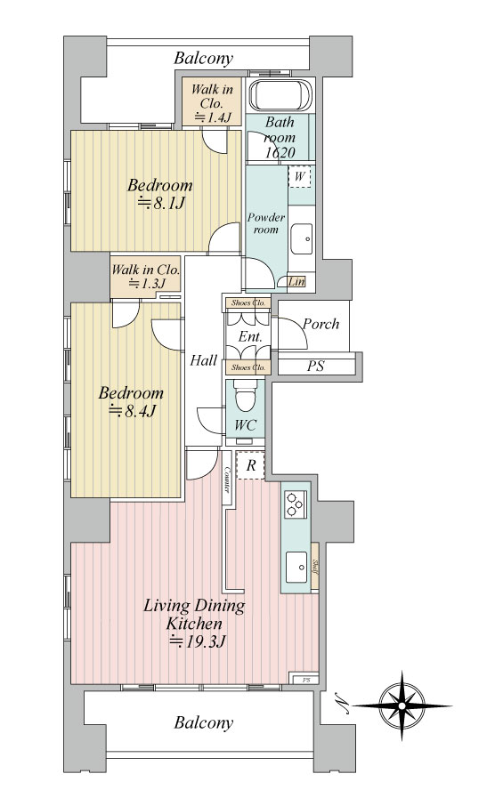 | 間取内容 | LDK19.3帖 洋室8.4帖 洋室8.1帖 | ||