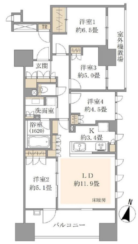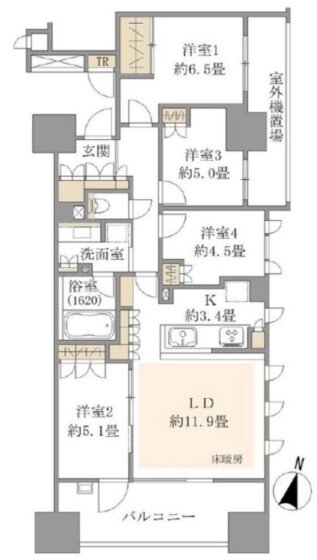 | 間取内容 | LD11.9帖 K3.4帖 洋室6.5帖 洋室5.1帖 洋室4.5帖 | ||